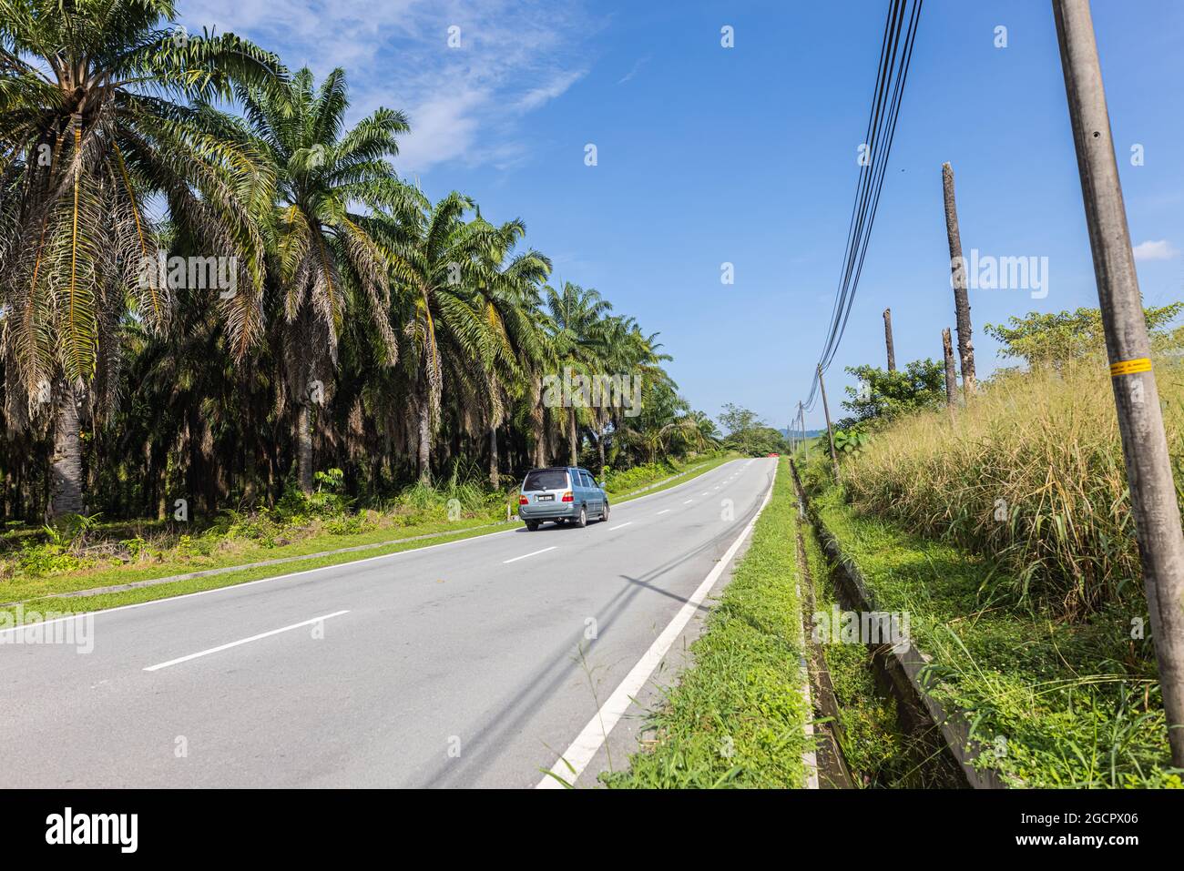 Hulu Langat District Selangor Malaysia December 29 2020 A Single Car Drives Over The Otherwise Empty Jungle Road Power Lines Accompany The Cour Stock Photo Alamy