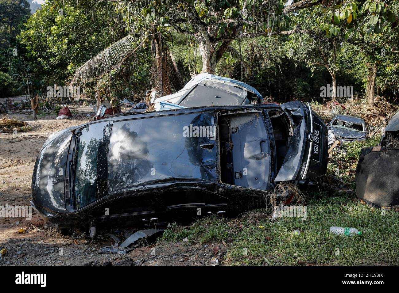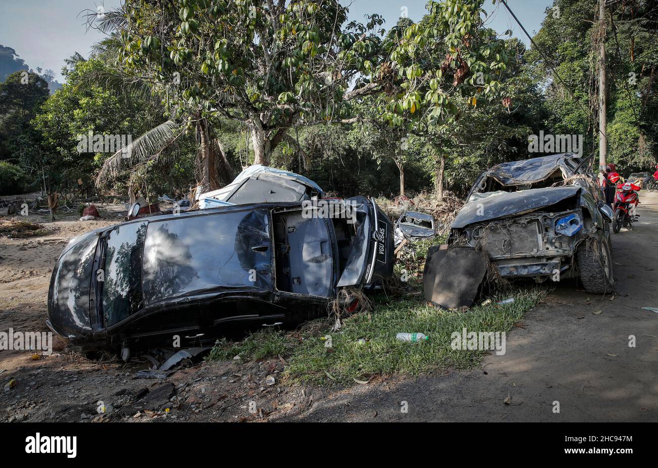 Kuala Lumpur Malaysia 26th Dec 2021 Damaged Cars Are Seen On A Riverside After The Massive Floods At Hulu Langat The Outskirts Of Kuala Lumpur The Death Toll Due To The Flood Disaster